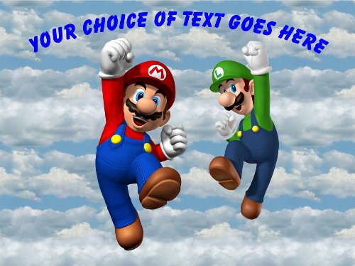 Mario Brothers pre-cut 7.5"x10" edible cake topper made from real icing and printed with edible inks. Suitable for 8"x10.5" and larger cakes. Our new, improved recipe, cake toppers are suitable for use on most types of cake covering such as Royal, Fondant, Butter Cream and Sugar Paste. They are easy to apply following the supplied instructions and have a shelf life of up to 12 months if the packaging remains sealed and kept in cool, dry conditions. Normally despatched the same day if your order is received by 2.00pm. All sizes are approximate and printing is subject to a possible 1mm registration offset. Please be aware that because we are printing onto sheets of real icing it is not possible to achieve a true photographic standard of image reproduction.