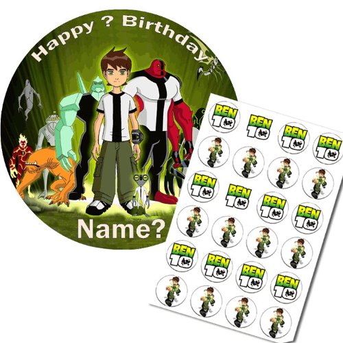 This Ben 10 pre-cut 7.5" circular edible cake topper is made from real icing and printed with edible inks. Suitable for 8" diameter and larger cakes. Our cake toppers are suitable for use on most types of cake covering such as Royal, Fondant, Butter Cream and Sugar Paste. They are easy to apply following the supplied instructions and have a shelf life of up to 12 months if the packaging remains sealed and kept in cool, dry conditions. Normally despatched the same day if your order is received by 2.30pm. All sizes are approximate and printing is subject to a possible 1mm registration offset. Please be aware that because we are printing onto sheets of real icing it is not possible to achieve a true photographic standard of image reproduction.